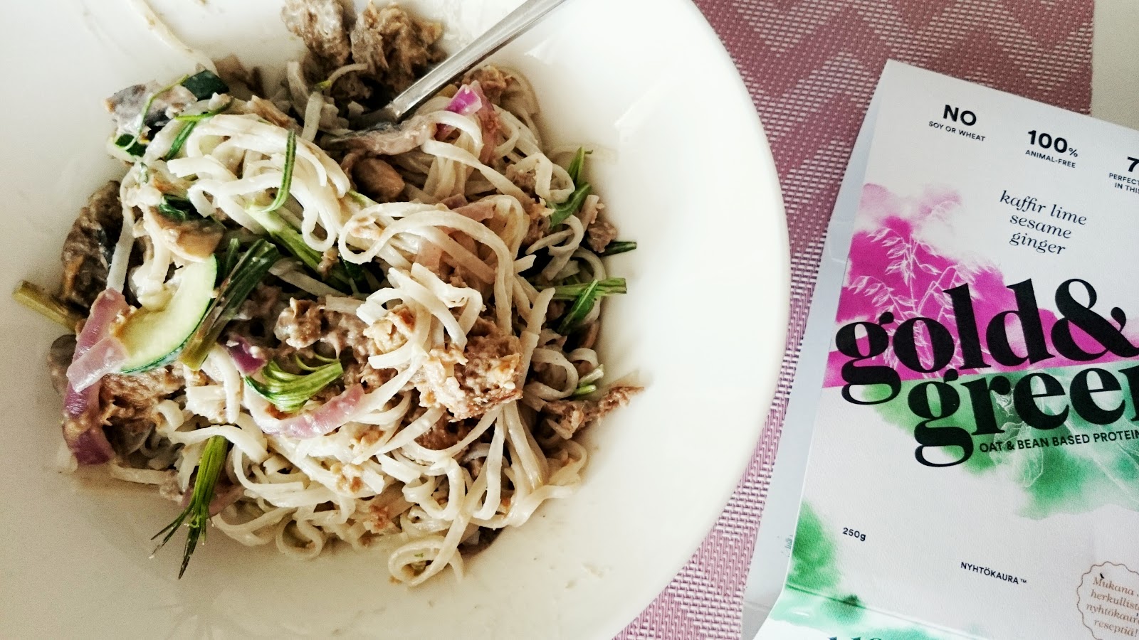 Iltapäivällä kävin sitten noutamassa ensimmäisen nyhtisrasiani. Olin tilannut maustamatonta versiota, mutta jostain syystä minulle oli varattu lime-inkivääri-maku. Hetken harmittelin tätä, koska jouduin testikokkailun yhteydessä astumaan ulos mukavuusalueeltani. Mitä ihmeen thairuokaa tästä nyt pitäisi kehittää? T: Se, joka työntää niitä välimeren makuja joka paikkaan :D