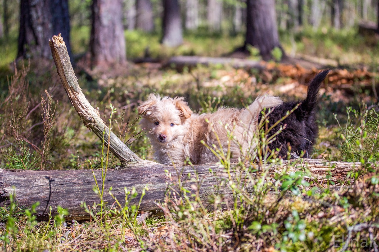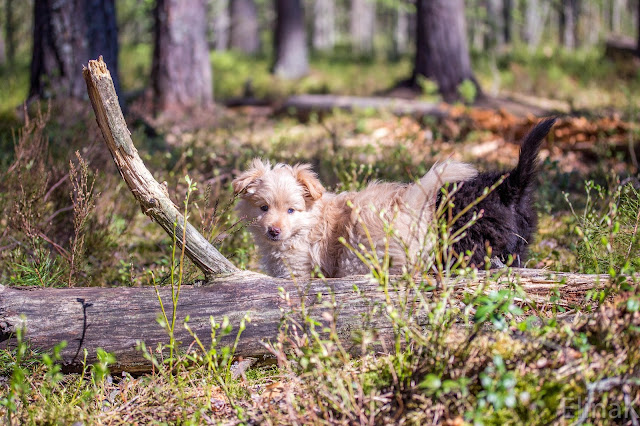 Seitsemänviikkoiset pennut olivat ensimmäistä kertaa metsässä, ja ihmeteltävää riitti.