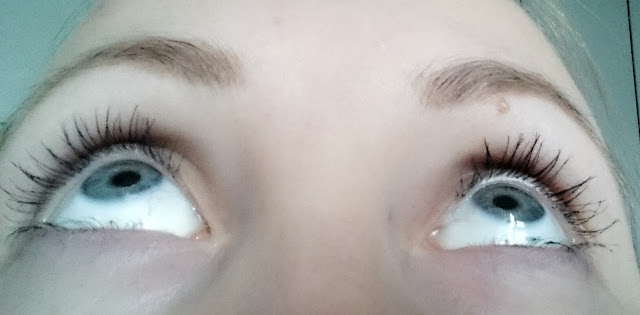 Kaksi kerrosta antaa jo melkoisen näyttävän (kaikki on niin suhteellista :D) lopputuloksen. Harja on sopivan kokoinen ja annostelee värimassaa ongelmitta. Ainoa pieni miinus tulee väriputkilon aukosta; harjaa on vaikea laittaa sinne takaisin ilman, että ripsiväriä tursuu reunoille ja tilsiintyy kierteiden väliin.