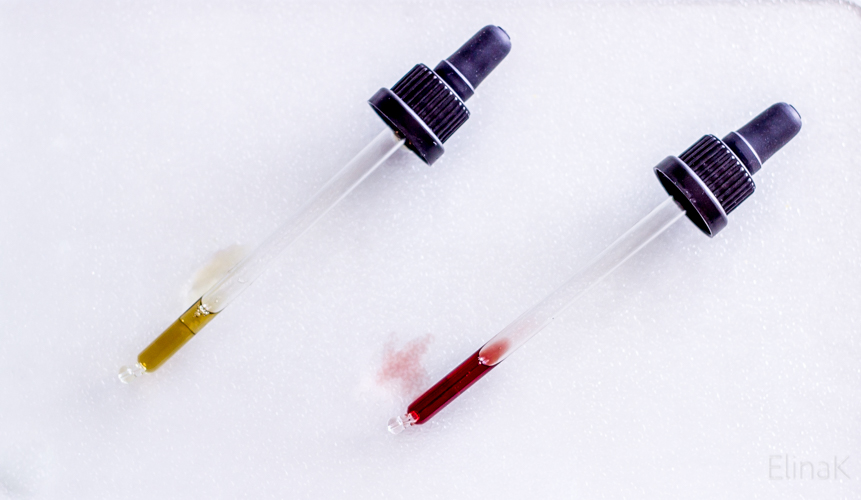 Yrtit ovat uutoksina kasvisglyserolin seassa. Molempia tuotteita voi valmistajan mukaan ottaa kolme pipetillistä päivässä, itse en aivan tällaiseen tiheyteen yltänyt. Maut ovat molemmissa siedettäviä, eivät nyt mitään herkkua mutta voittavat esimerkiksi punahattu-uutteen heittämällä. Uutteet ovat muuten tällä hetkellä tarjouksessa Hyvinvoinnin tavaratalossa :)
